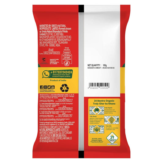 24 Mantra Organic Mustard Seeds Big/Sarson k beenj/Ava Ginjalu - 100gms | Pack of 1 | Chemical Free & Pesticides Free |