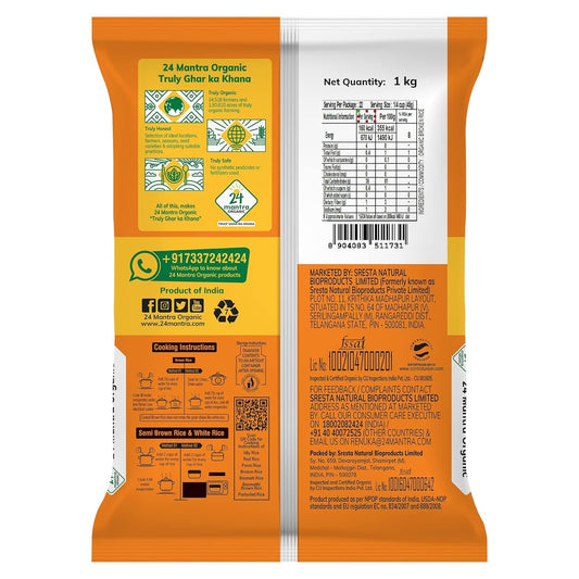 24 Mantra Organic Broken Rice/Chawal - 1 Kg | 100% Organic | Chemical Free & Pesticides Free | Shorter Grain & Packed Hygienically | Easy to Cook |