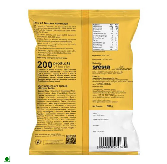 24 Mantra Organic Organic - Puffed Rice/Kadle Puri, 200 g Pouch
