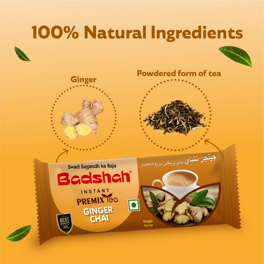 Badshah Instant Premix Ginger/Adrak Flavoured Tea Masala Powder, 140g (14g x 10 Sachets) / 100% Natural/Chai Masala