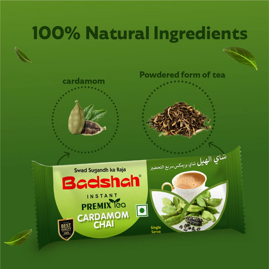 Badshah Instant Premix Cardamom/Elaichi Flavoured Tea Masala Powder - 140g (14g x 10 Sachets) / 100% Natural / Chai Masala
