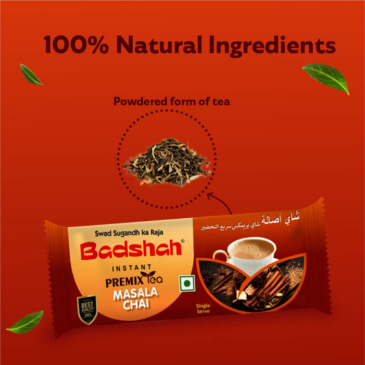 Badshah Instant Premix Masala Tea Powder, 140g (14g x 10 Sachets) / 100% Natural