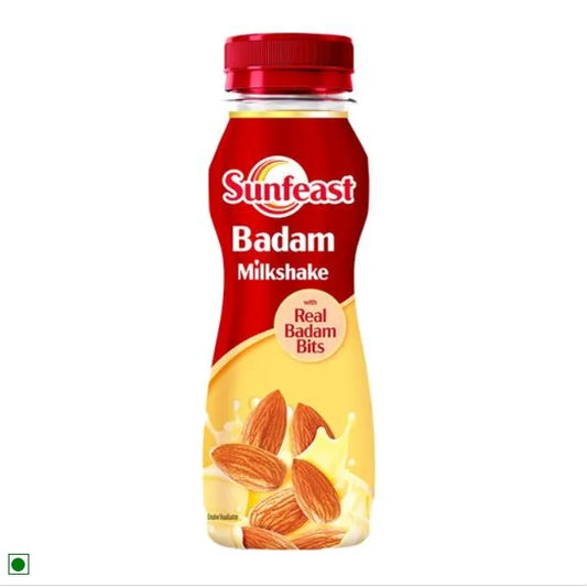 Sunfeast Badam Milkshake - With Real Almond Bits, Rich In Calcium & Protein, Thick, Creamy, 3x180 ml Multipack
