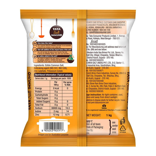 Tata Salt Immuno, Edible Common Salt, with Zinc and Iodine, 1 kg