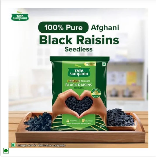 Tata Sampann 100% Pure Afghani Black Raisins Seedless | Kali Kishmish | Kali Draksh | Dry Fruits | Flavourful & Delicious Snack | 200 g
