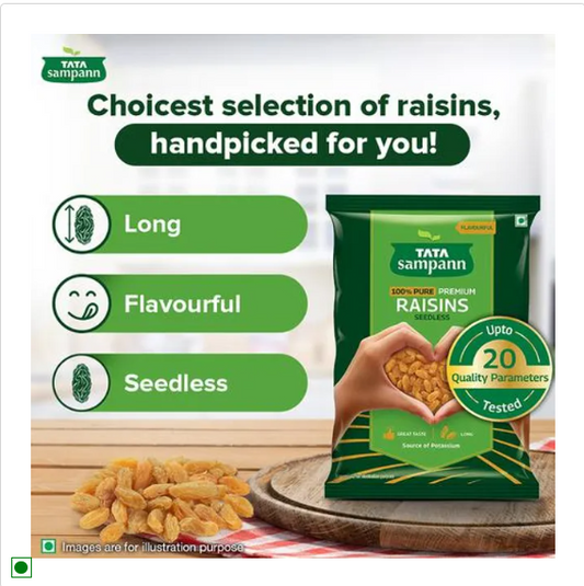 Tata Sampann 100% Pure Premium Raisins Seedless - Premium Quality Kishmish, Source Of Potassium, Premium Dry Fruits, 500 g Pouch