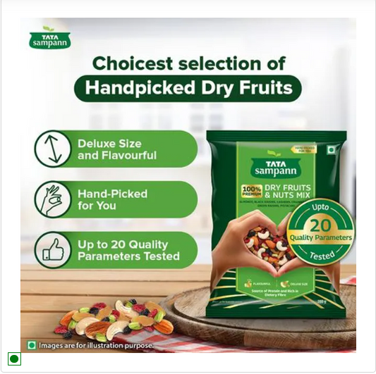 Tata Sampann Dry Fruits & Nuts Mix |Almonds, Black Raisins, Cashews, Cranberries, Green raisins, and Pistachio Kernels 200 g
