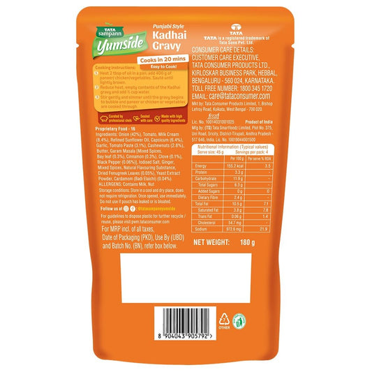 Tata Sampann Yumside Ready to Cook Kadhai Gravy - Punjabi Style, 180g, Instant Food