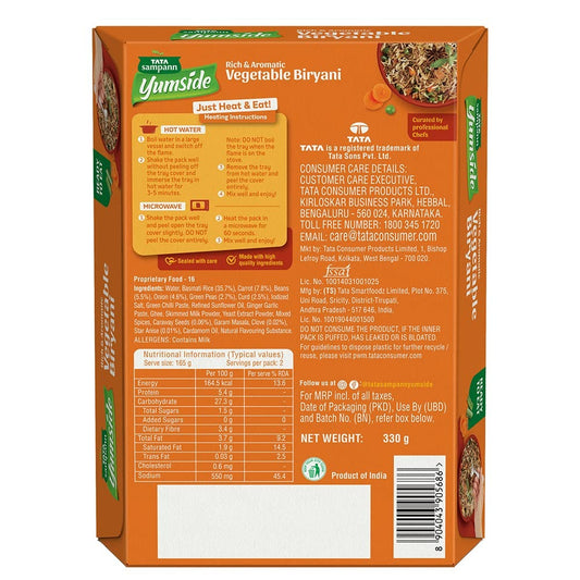 Tata Sampann Yumside Ready to Eat Veg Biryani, 330g, Instant Food, Ready in 60 secs