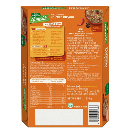 Tata Sampann Yumside Ready to Eat Chicken Biryani, 330g, Instant Food