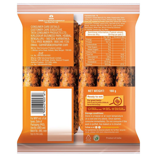 Tata Sampann Yumside Ready to Eat Chicken Seekh Kebab, 180g, Instant Food, Ready in 20 min