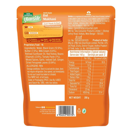 Tata Sampann Yumside Ready to Eat Dal Makhani, 285g, Instant Food, Delhi Style, Ready in 60 Secs