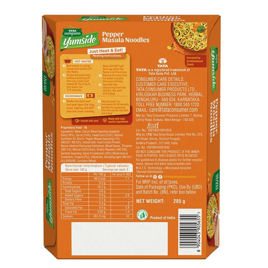 Tata Sampann Yumside Instant Pepper Masala Veg Noodles, 285g, Wheat Atta Noodles, Ready to Eat Food,