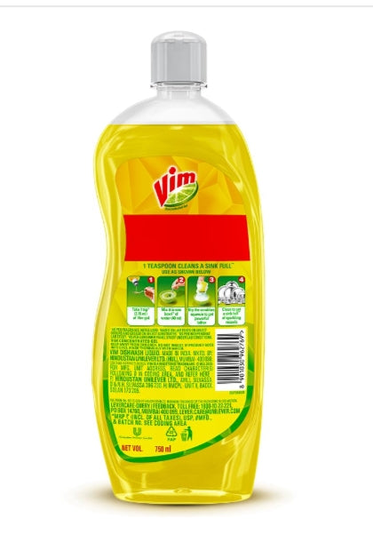 Vim Dishwash Liquid Gel Lemon, With Lemon Fragrance, Leaves No Residue, Grease Cleaner For All Utensils, 750 ml Bottle