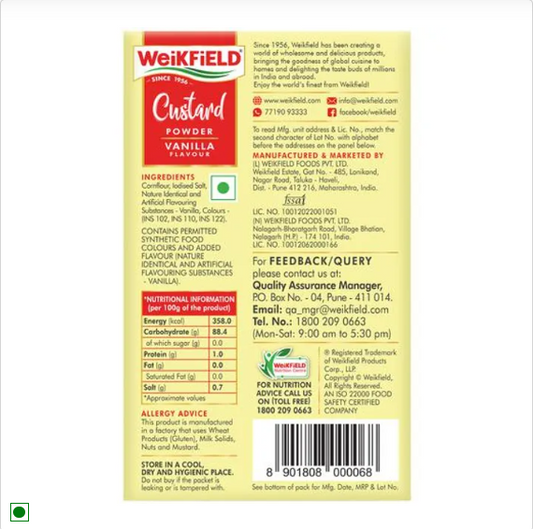 Weikfield Custard Powder - Vanilla Flavour,Best For Fruit Salads & Puddings, 100 g Carton