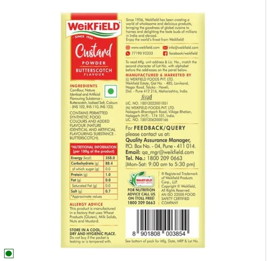 Weikfield Butterscotch Custard Powder - Makes Smooth & Creamy Custard Best For Fruit Salads & Puddings, 100% Vegetarian, 75 g Carton