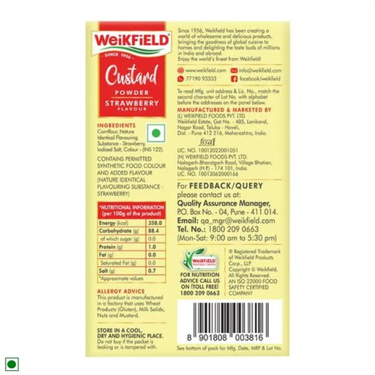 Weikfield Custard Powder - Strawberry Flavour, Makes Smooth & Creamy Custard, Contains Quality Ingredients, 75 g Carton