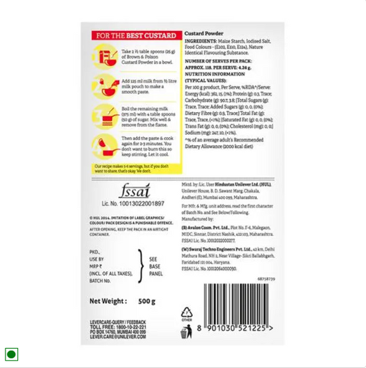 Brown & Polson Custard Powder - Vanilla Flavour, 500 g