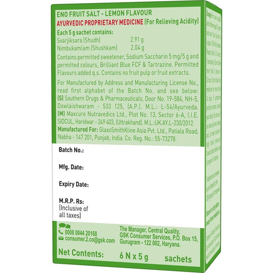 ENO Lemon Multipack Digestive Fruit Salt 30 gm ( Pack of 6 )