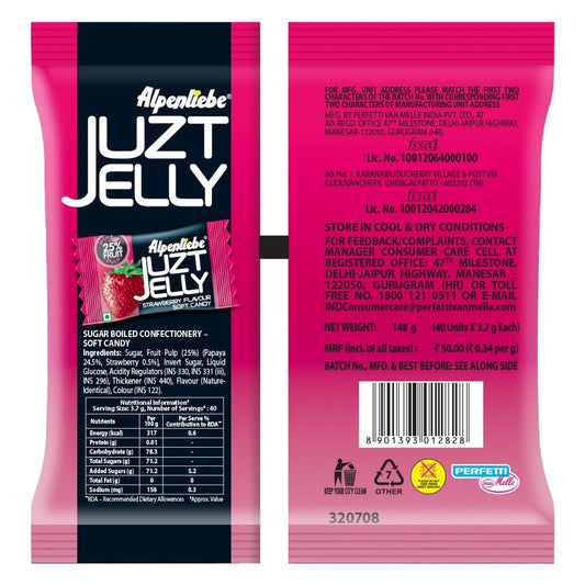 Alpenliebe Juzt Jelly, Strawberry Pouch, 171 g, 45 pc