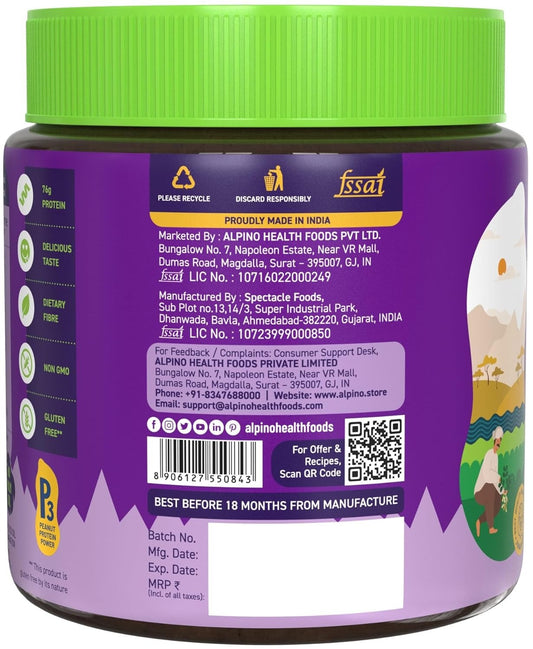 ALPINO Chocolate Peanut Butter Crunch 400g - Roasted Peanuts, Chocolate Paste, Brown Sugar & Sea Salt - 24g Protein, non-GMO & Gluten Free