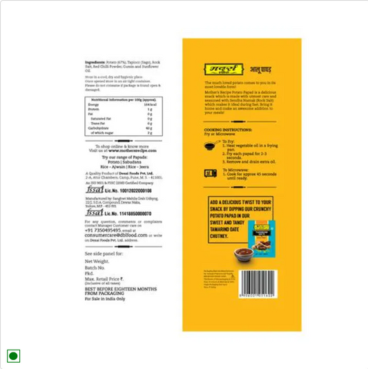 Mother's Recipe Papad - Potato With Rock Salt, Crispy & Flavourful, 70 g Pouch
