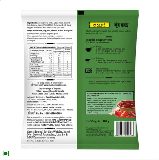 Mother's Recipe Moong Papad 5" Pouch, 180 g