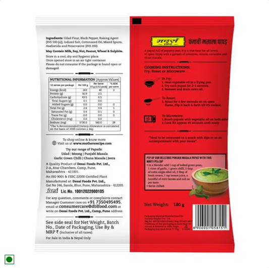 Mother's Recipe Papad - Punjabi Masala, 180 g Pouch