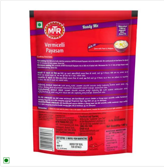 MTR Ready Mix - Vermicelli Payasam, 180 g Pouch