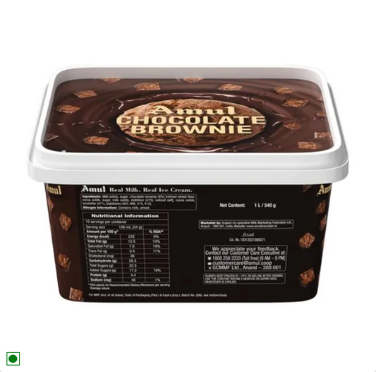 Amul Ice Cream - Chocolate Brownie, 1 L Tub