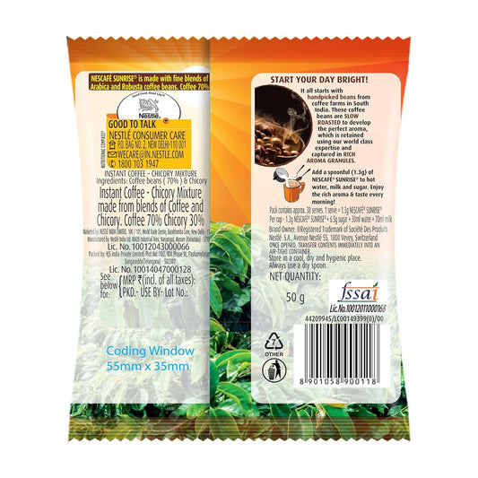 NESCAFE SUNRISE Instant Coffee Powder Pouch| Coffee-Chicory Mix | Rich Taste & Aroma | 50 g
