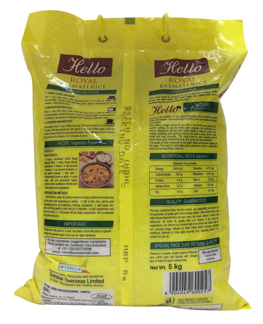 Hello Basmati Rice - Royal, 5kg Bag