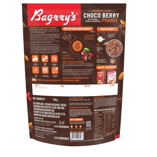 Bagrrys Crunchy Dark Choco Berry Muesli With Almond,Quinoa & Cranberries 750gm Pouch