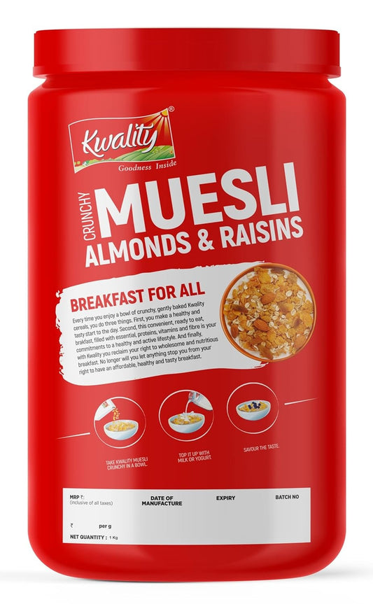Kwality Muesli Almond, Raisins & Honey 1Kg Jar