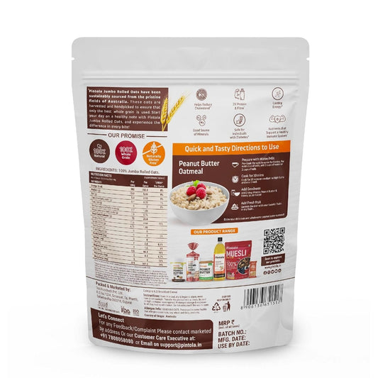 Pintola Oats 400g, 100% JUMBO Rolled Oats, Wholegrain, Gluten Free, High Fibre & Protein|Healthy Breakfast Oatmeal, Cereals