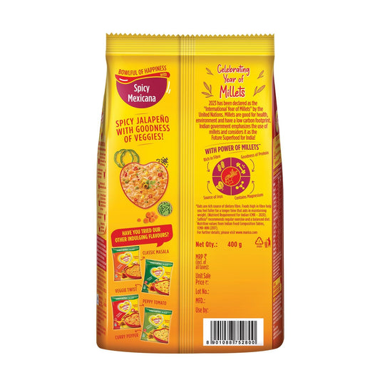 Saffola Masala Oats Spicy Mexican, Spicy Flavoured Rolled Oats with High Fibre, Yummy Anytime Snack, 400g