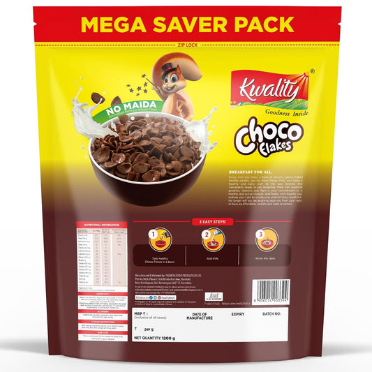 Kwality Choco Flakes 1kg | Made with Whole Wheat, 0% Maida | Source of Protein & Fiber |Healthy Food & Breakfast Cereal for Kids