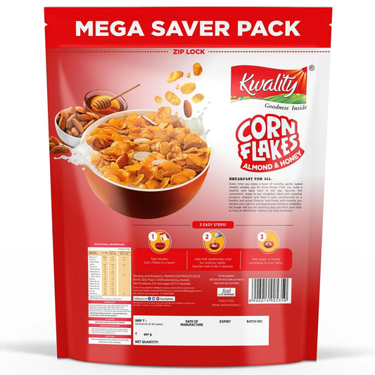 Kwality Corn Flakes with Almond & Honey 1Kg | High in Protein, Zero Cholesterol | Perfect with Mixed Fruits | Healthy Food & Breakfast Cereal