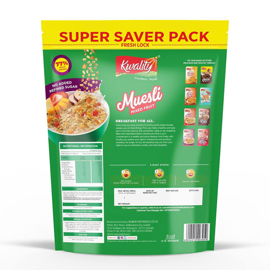 Kwality Muesli Mixed Fruit Super Saver Pack 700g | Zero Cholesterol and Trans Fat | No Added Refined Sugar | Healthy Food & Breakfast Cereal