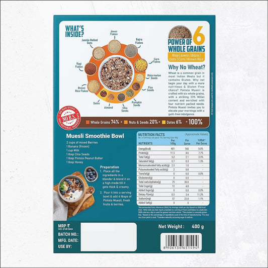 Pintola Wholegrain & Seeds Muesli with 33% Millet 400g, Cereals for Breakfast with 26% Nuts, Seeds & Dates|