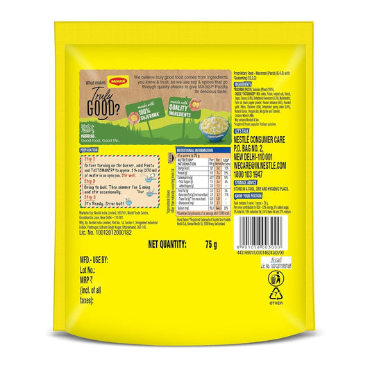 MAGGI Pazzta Cheese Macaroni Pasta, Delicious Italian Style Instant Pasta, Made with 100% Suji & Quality Ingredients, 75g