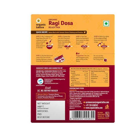 Organic Tattva, Organic Ragi Dosa Instant Ready Mix 200 Gram | Rich Source of Iron, Calcium and Dietary Fiber | Gluten Free