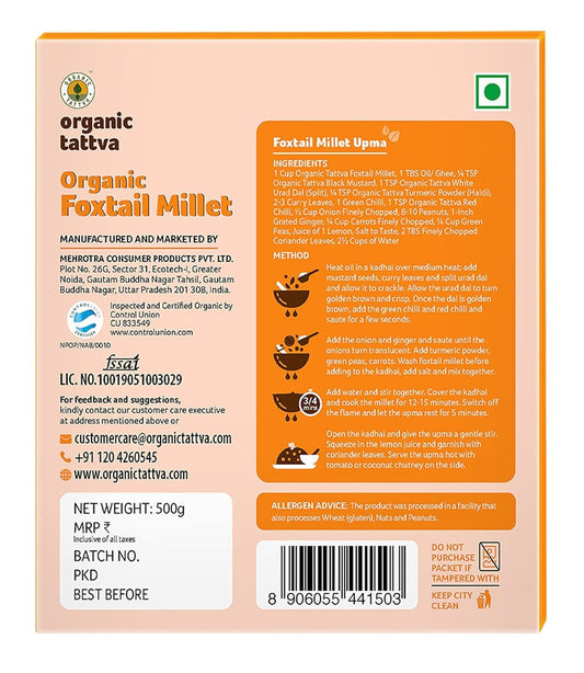 Organic Tattva - Organic Foxtail Millet 500 Gram | High Protein, Zero Cholesterol and Fiber Rich