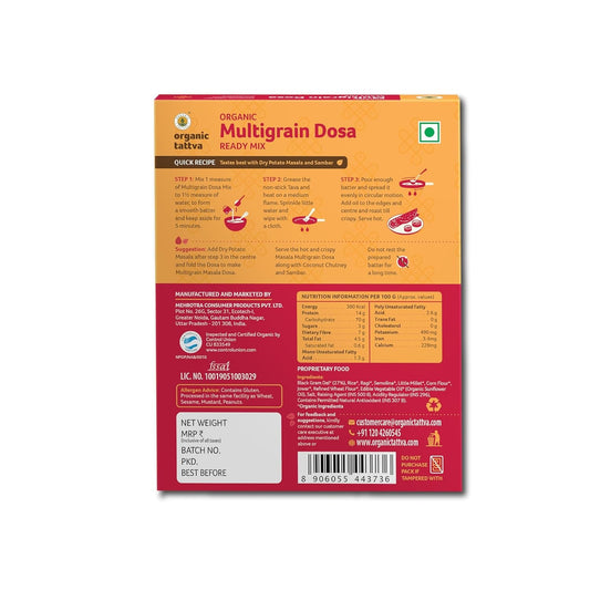 Organic Tattva, Organic Instant Ready Mix Multigrain Dosa, 200 Gram | Rich Source of Iron and Calcium | Ready in 3 Easy Steps