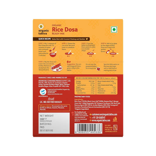 Organic Tattva, Organic Instant Ready to Eat Rice Dosa Mix 200 Gram | Rich in Protein, NO Cholesterol |