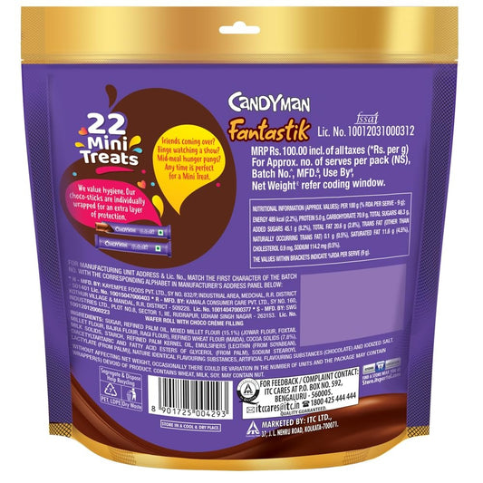 Candyman Fantastik Mini Treats Choco Wafer Rolls Chocolate, 125.4g