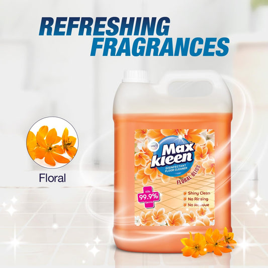 Wipro Maxkleen Floral Bliss Disinfectant Floor Cleaner| 99.9% Germ Protection with Deep Cleaning Technology| Safe for Kids & Pets| 5L