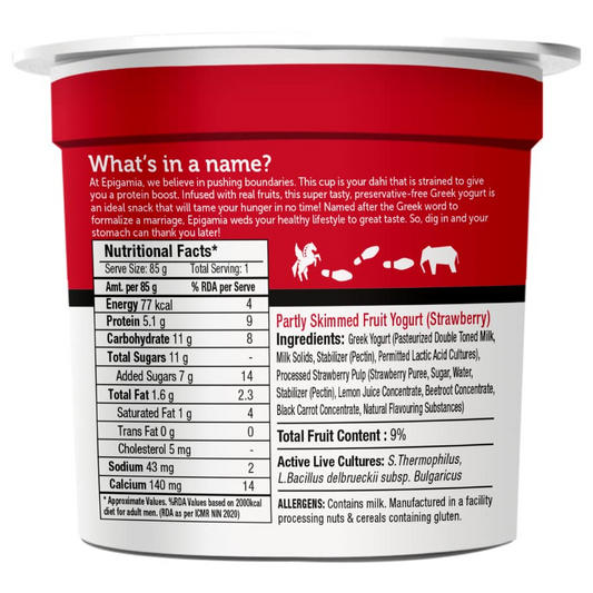 Epigamia Greek Yogurt, Strawberry, 85 g