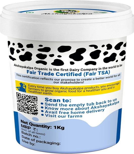 Akshayakalpa Artisanal Organic Set Curd – thick and creamy, perfectly-set, zero-preservatives, fresh and nutritious by nature - 1 Kg