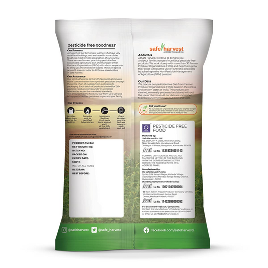 Safe Harvest Pesticide Free Goodness Unpolished Tur Dal/Arhar Dal | Natural | Chemical Free | Vegan | Gluten Free - 1Kg